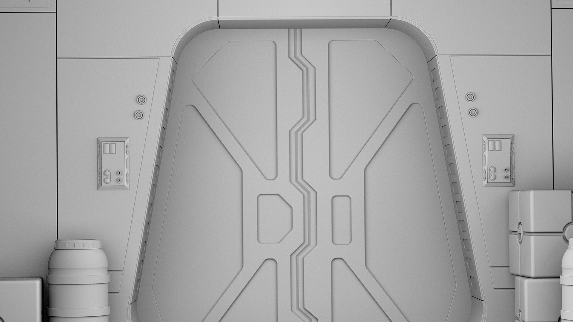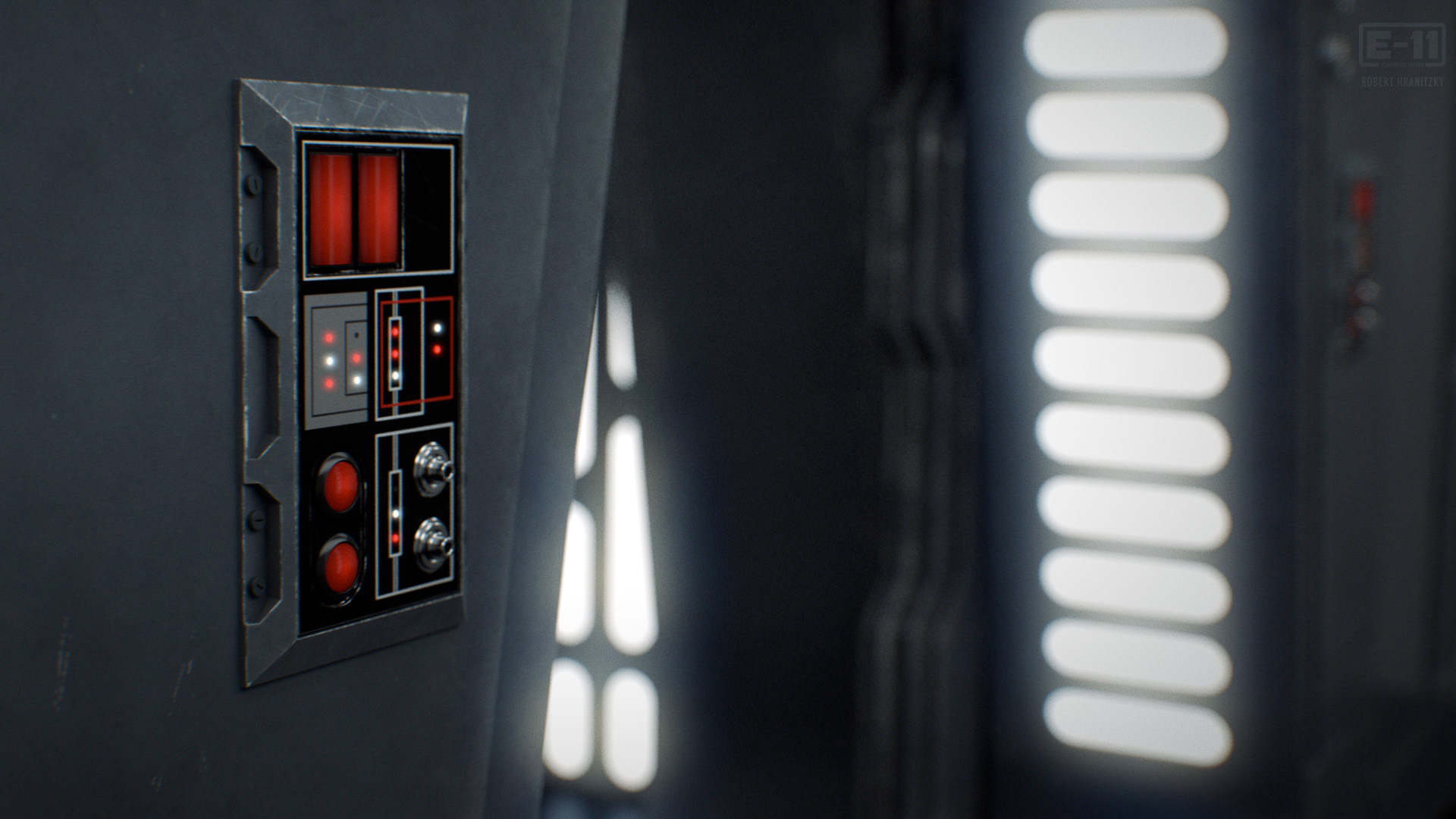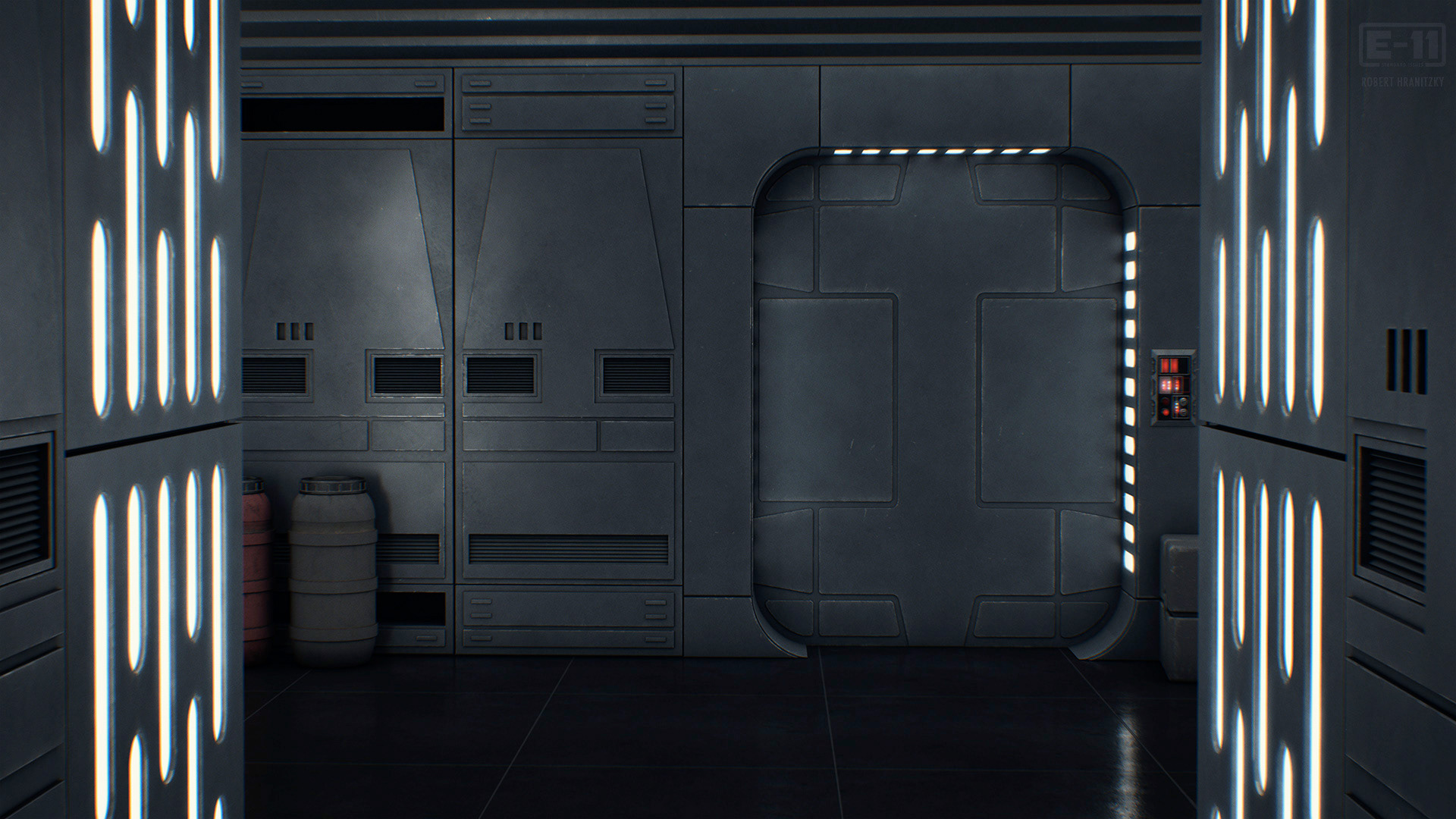 For my fan film E-11, I had to create multiple corridor elements to create the virtual sets. The design was based on and inspired by the look and feel of the OG trilogy as well as current shows. I modelled all the elements in Cinema 4D and textured them in Adobe Substance 3D Painter.