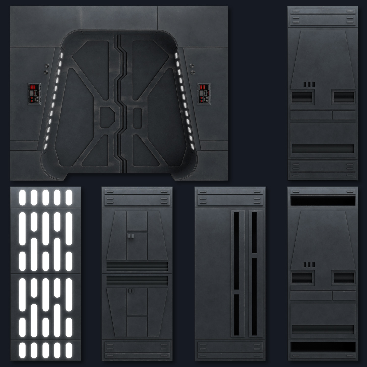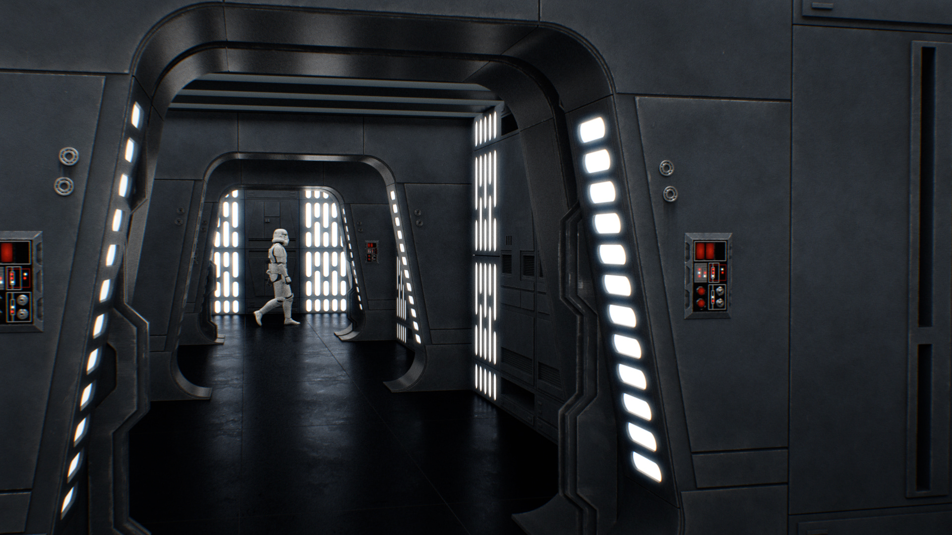 Some shots from my Star Wars Fan Film E-11, where all these (and more) corridor elements and panels were used.